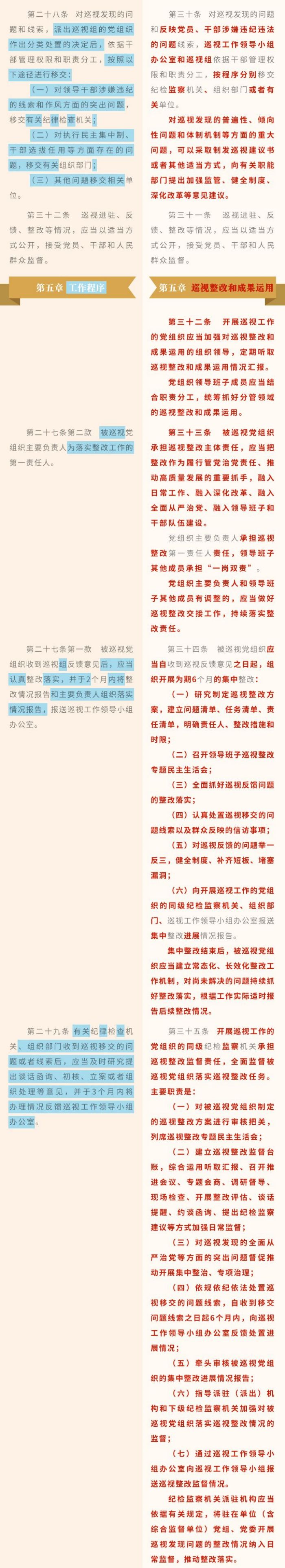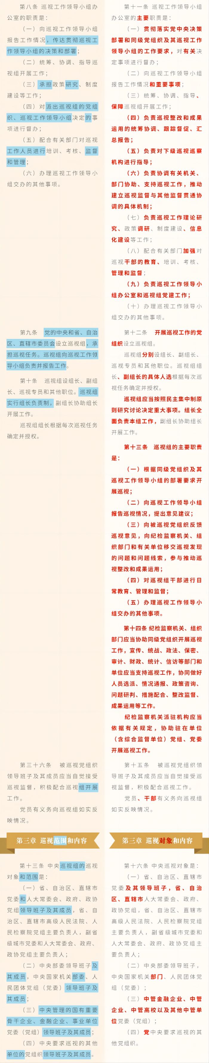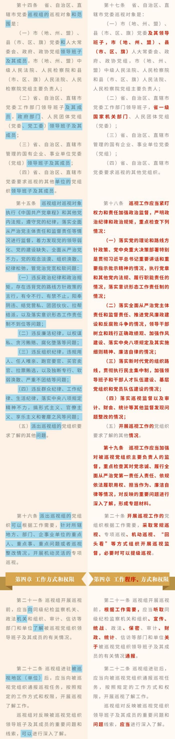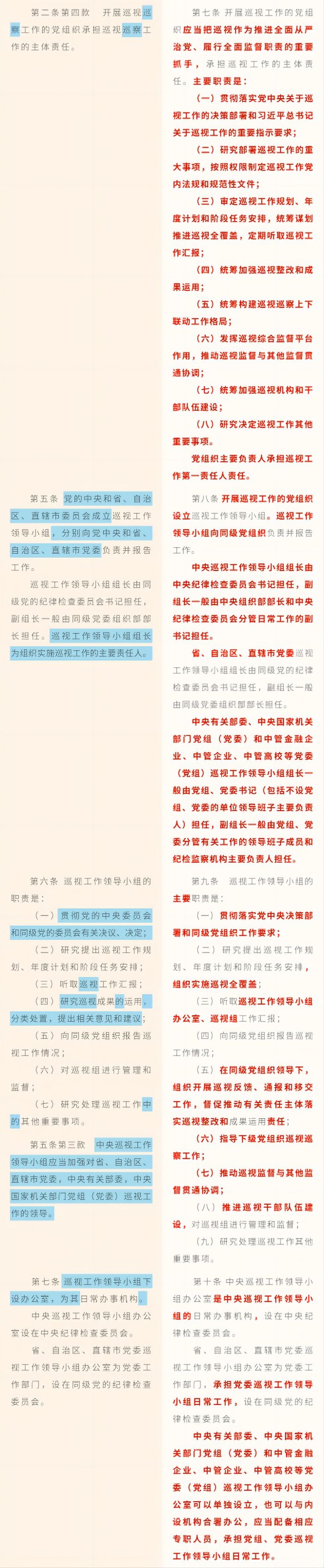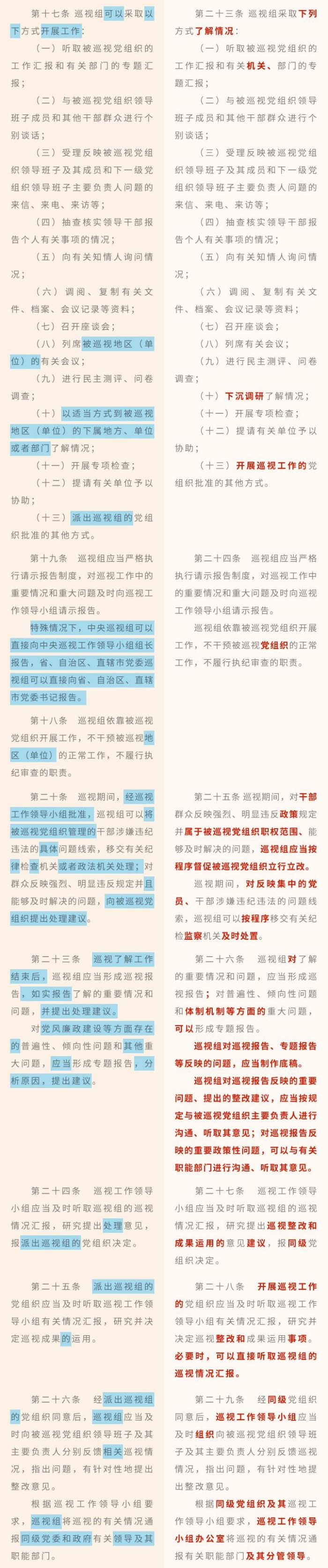 《中國(guó)共產(chǎn)黨巡視工作條例》修訂條文對(duì)照表
